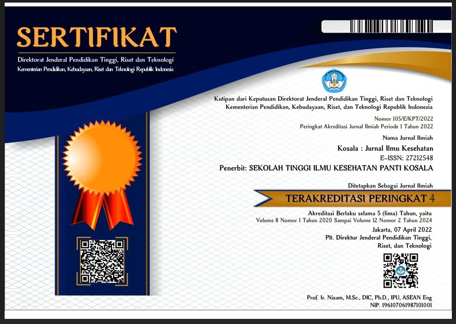 Latar belakang: perasaan cemas dapat menyerang siapa saja, terutama mahasiswa keperawatan yang sedang melakukan praktik klinik. Mahasiswa keperawatan dituntut untuk dapat memahami, mendalami, dan mempraktikkan ilmu yang telah dipelajari selama perkuliahan di kampus. Semakin tinggi tingkat kecemasan, maka perlu adanya mekanisme koping untuk mengatasi kecemasan yang terjadi. Ketika mahasiswa mengalami kecemasan, maka individu akan menggunakan berbagai mekanisme koping untuk mengatasi rasa cemas. Apabila individu tidak mampu mengatasi kecemasan secara konstruktif, maka dapat menjadi penyebab terjadinya perilaku yang patologis. Tujuan penelitian ini untuk mengetahui hubungan mekanisme koping dengan kecemasan mahasiswa keperawatan tingkat III STIKES PANTI KOSALA dalam menghadapi praktik klinik. Subyek dan metode: metode yang digunakan adalah deskriptif kuantitatif dengan cross sectional. Uji statistik yang digunakan adalah uji chi square dengan nilai signifikan ?<0,05. Subjek penelitian adalah mahasiswa tingkat III semester VI Prodi DIII Keperawatan STIKES PANTI KOSALA tahun ajaran 2022/2023 dengan sampel sebanyak 56 orang diambil menggunakan teknik total populasi. Hasil penelitian menunjukkan sebanyak 6 responden (10,7%) mengalami kecemasan berat, 5 responden (8,9%) mengalami kecemasan ringan dan sedang. Mayoritas responden menggunakan mekanisme koping maladaptif sebanyak 38 mahasiswa (67,9%). Mahasiswa yang menggunakan koping maladaptif, memiliki tingkat kecemasan normal lebih banyak yaitu 68,4% dibandingkan mahasiswa yang menggunakan koping adaptif sebesar 61,1%. Kesimpulan penelitian ini yaitu tidak terdapat hubungan bermakna antara mekanisme koping dengan kecemasan Mahasiswa Keperawatan Tingkat III STIKES PANTI KOSALA dalam Menghadapi Praktik Klinik (? = 0,695).