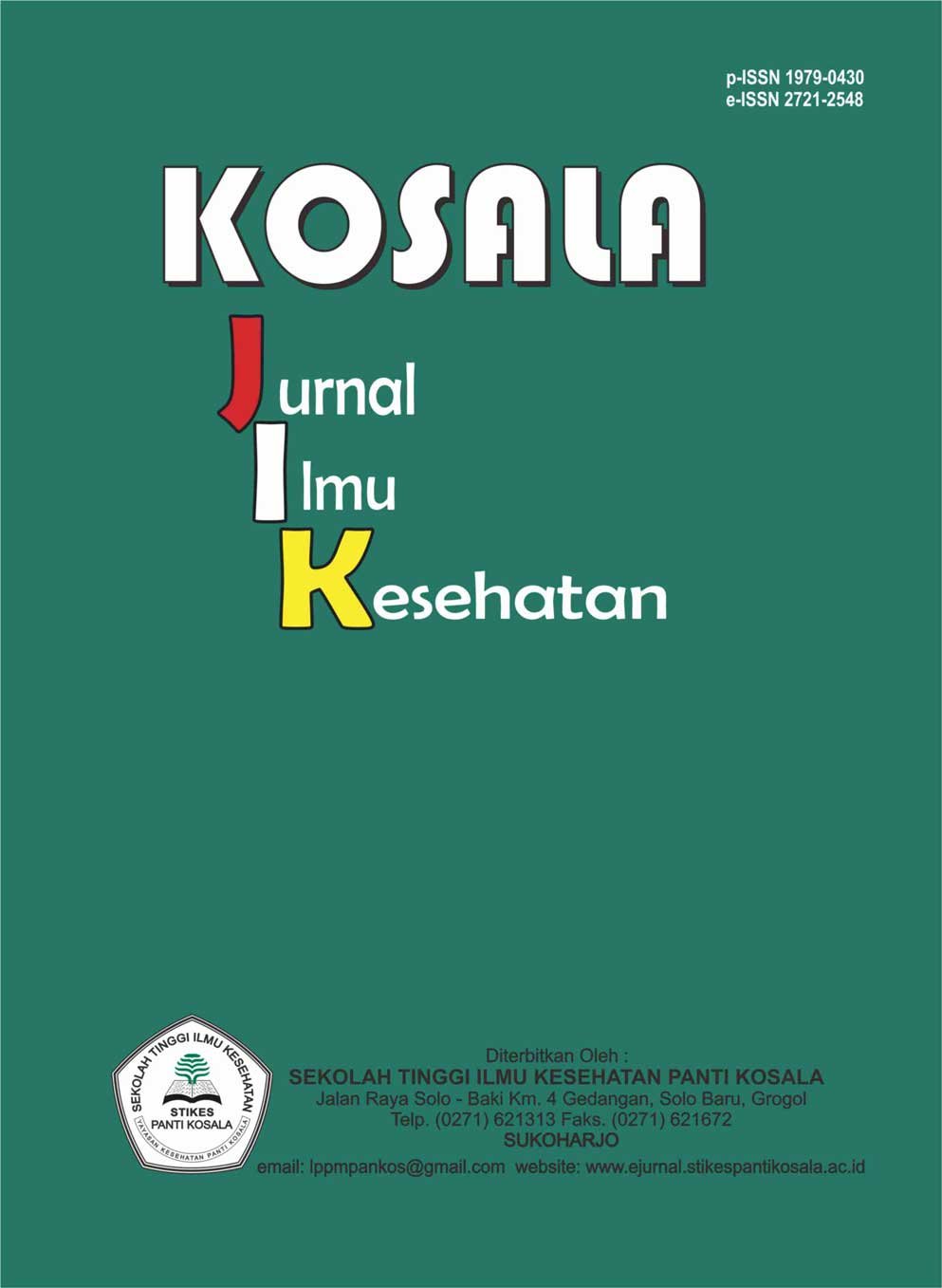 KOSALA : Jurnal Ilmu Kesehatan is a scientific journal published by Sekolah Tinggi Ilmu Kesehatan Panti Kosala Surakarta with registered number ISSN 1979-0430 (print), 2721-2548 (online). The focus of this journal is the dissemination of information related to health and nursing. The scope of this journal is clinical studies of nursing, research, literature review, nursing education and the nursing community. Knowledge covered includes basic nursing, child nursing, medical surgical nursing, maternity nursing, emergency nursing, mental health nursing, community nursing, family nursing and gerontic care. The journal also includes articles related to strengthening the health care system which includes health workers, health behavior and health policies.